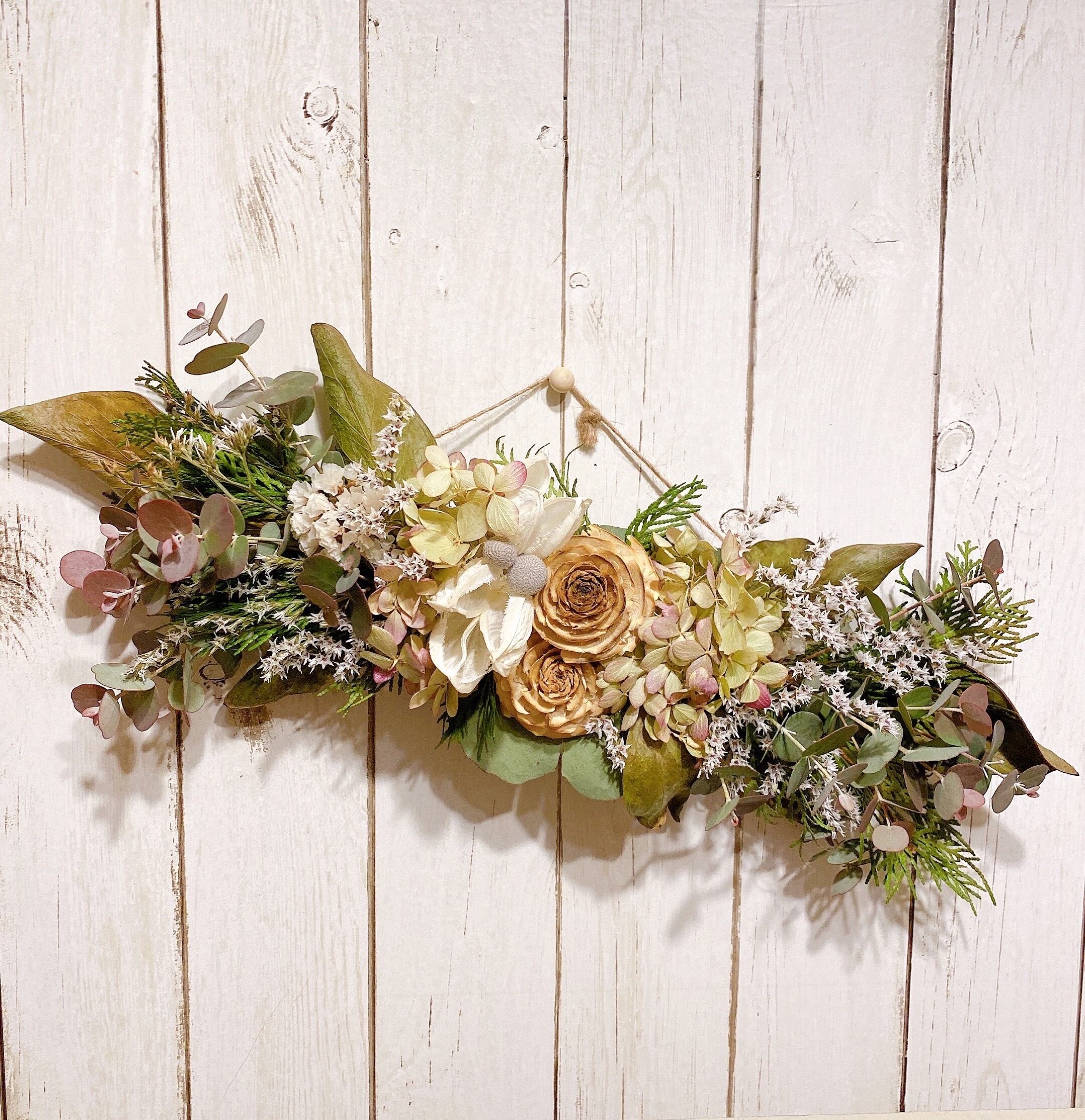 ドライフラワー シダーローズ 秋色紫陽花 横長スワッグ