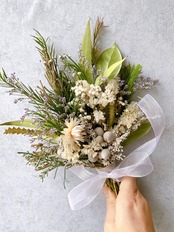 ドライフラワー green&White スワッグブーケ❀.*・゚