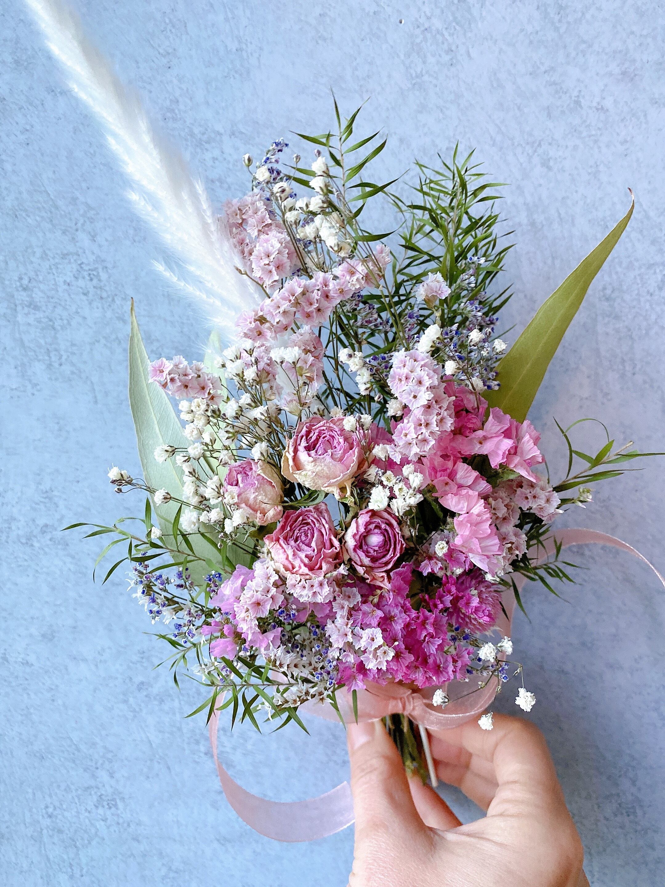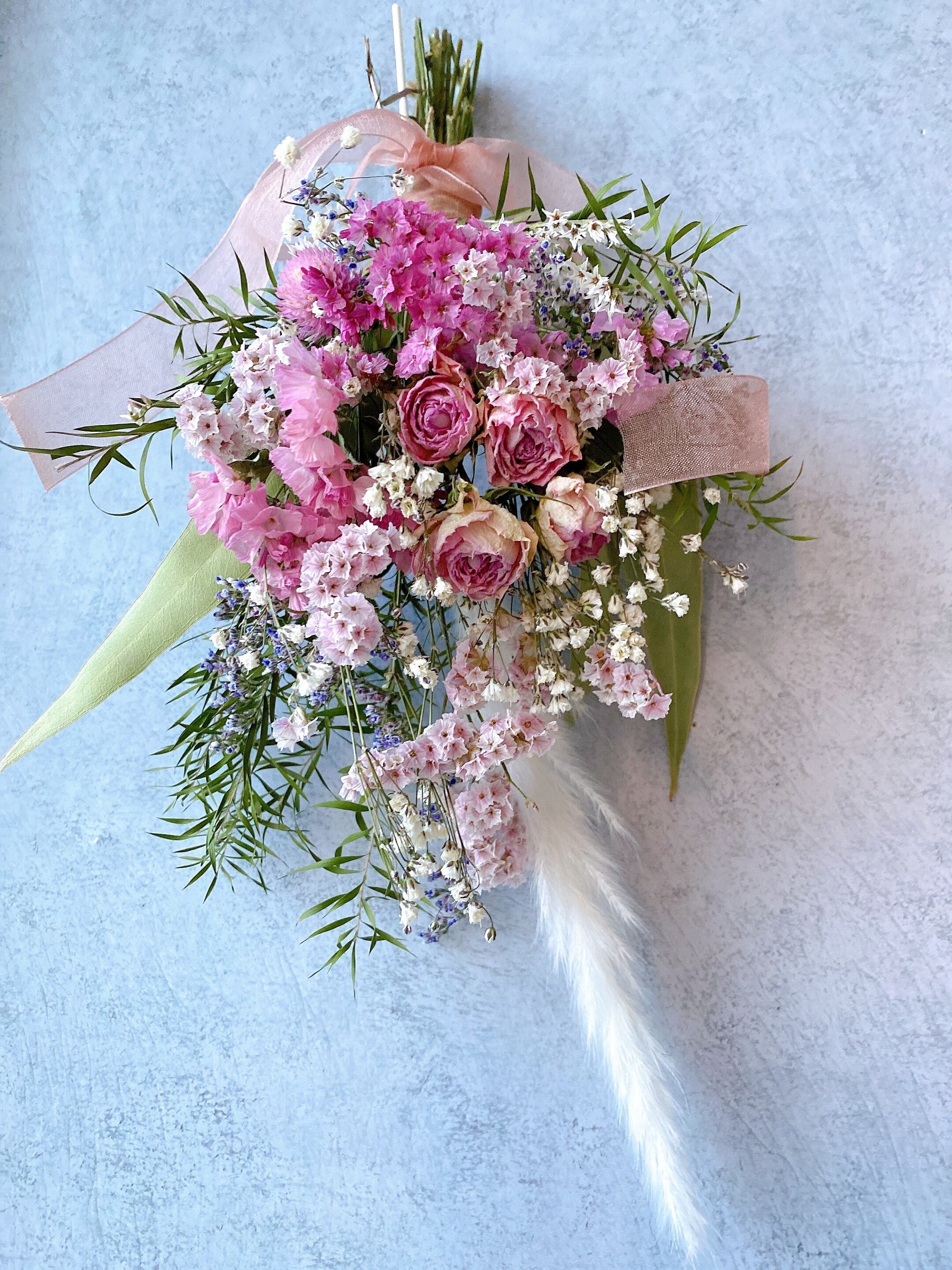 ドライフラワー ひな祭り 薔薇とパンパスグラス スワッグブーケ❀.*・゚