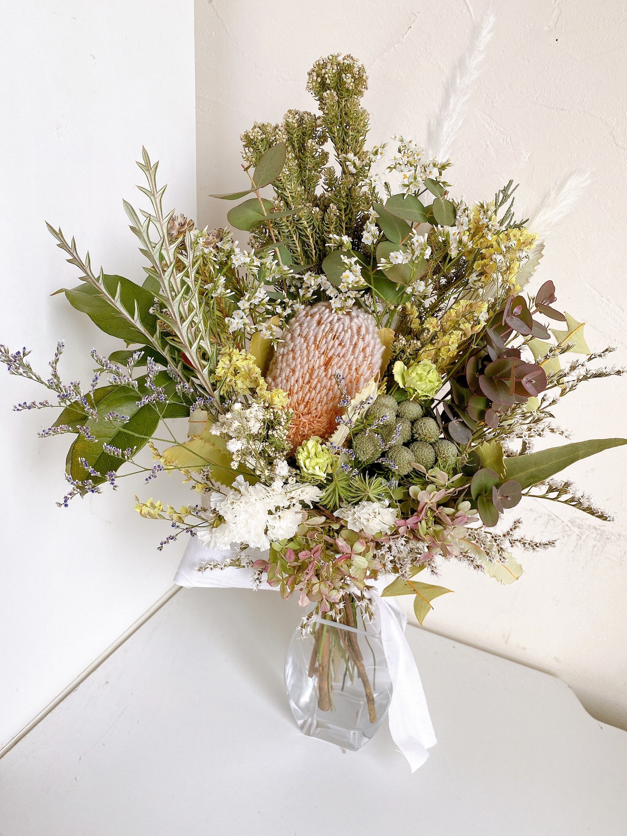 ドライフラワー ネイティブフラワー バンクシア Spring green スワッグ ブーケ