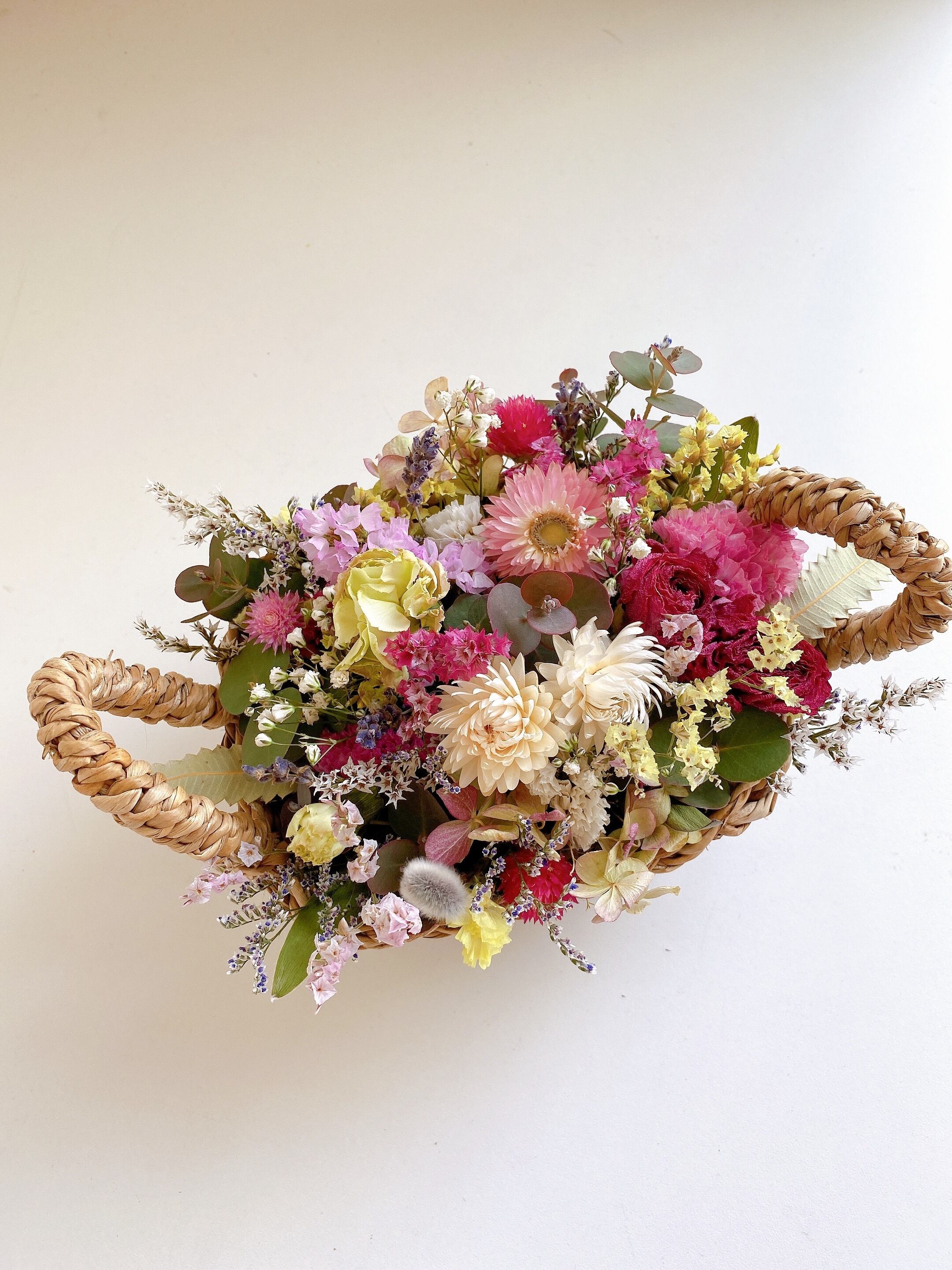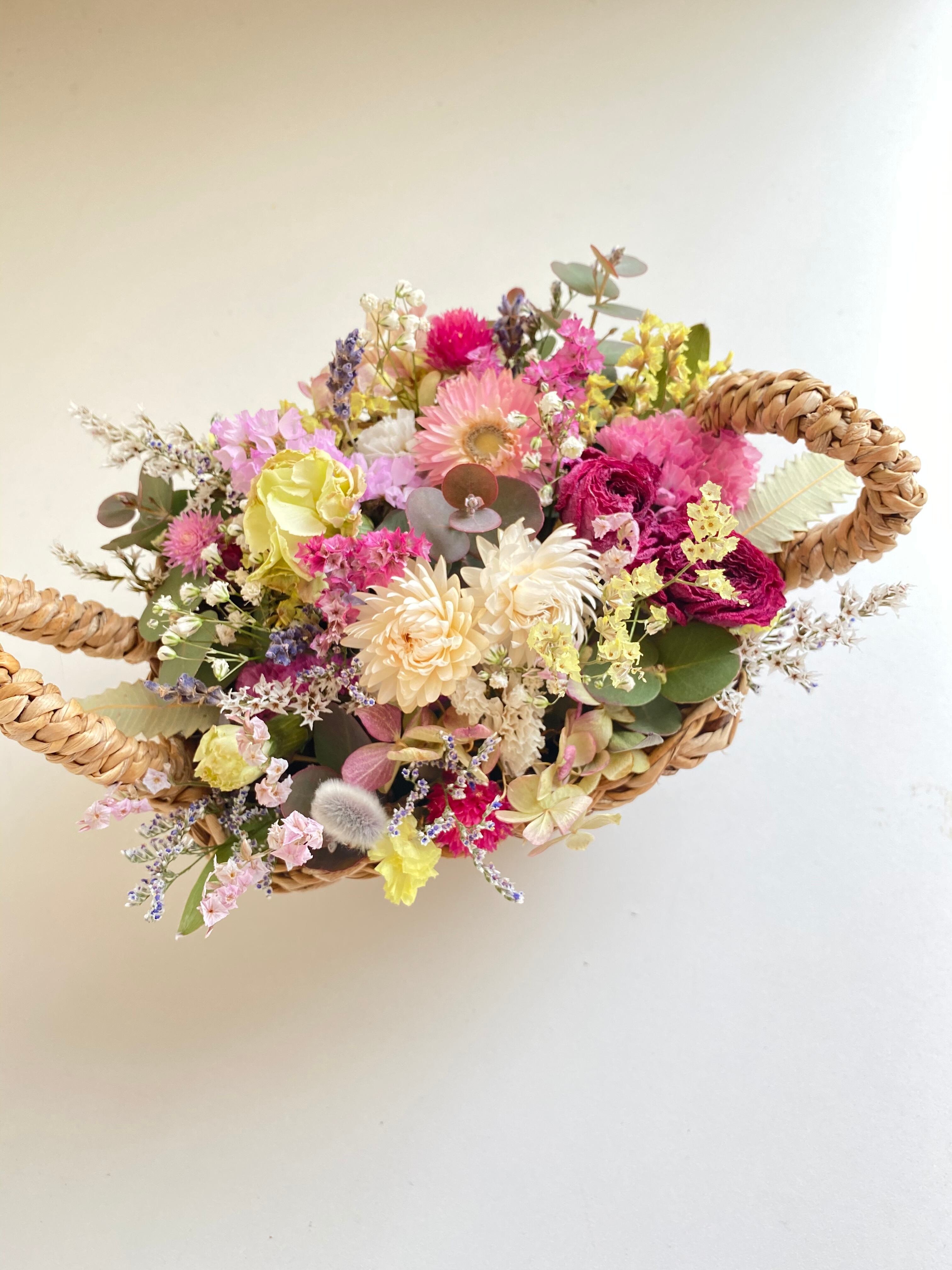 たくさんのお花をギュッとカゴのバスケットにつめた