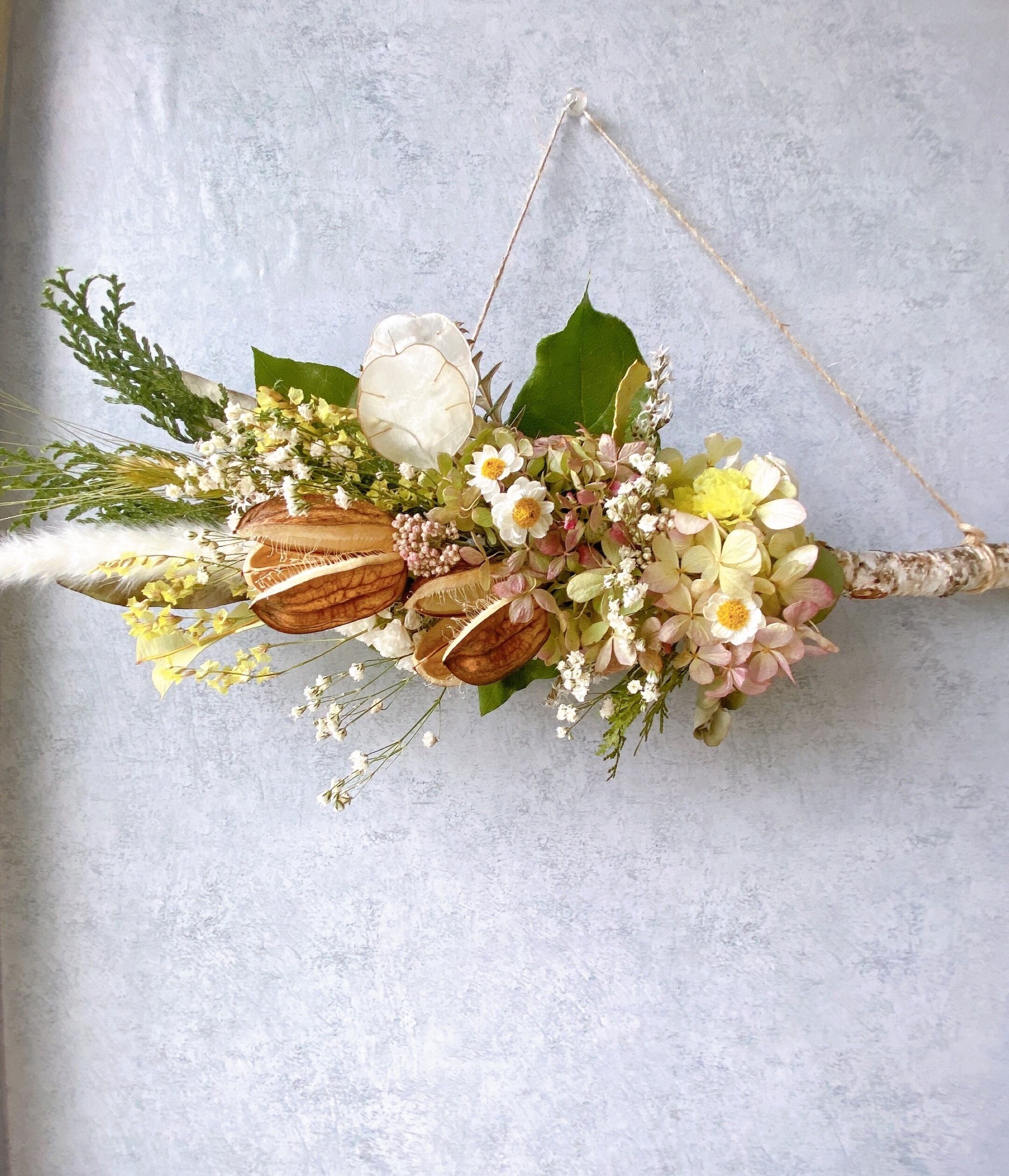 ドライフラワー 高原の春を感じる 白樺横長スワッグ