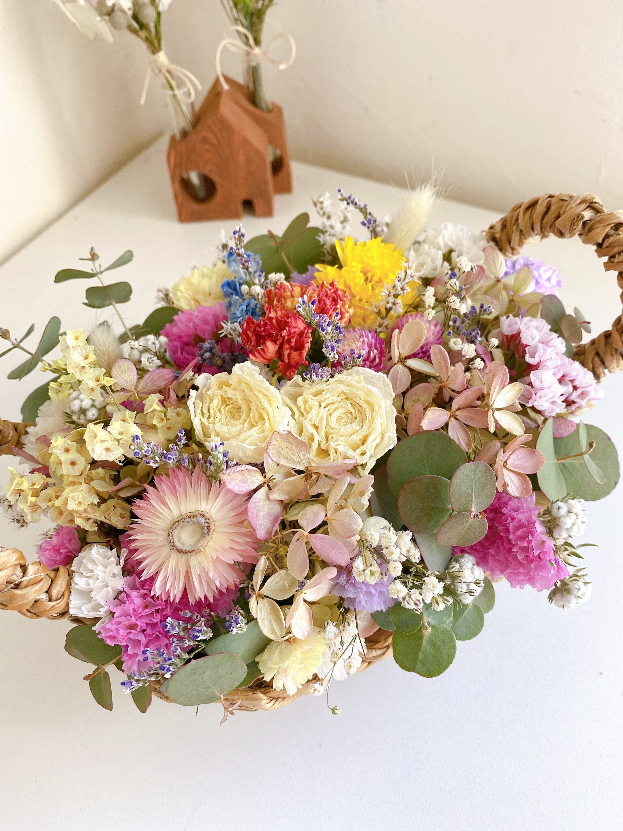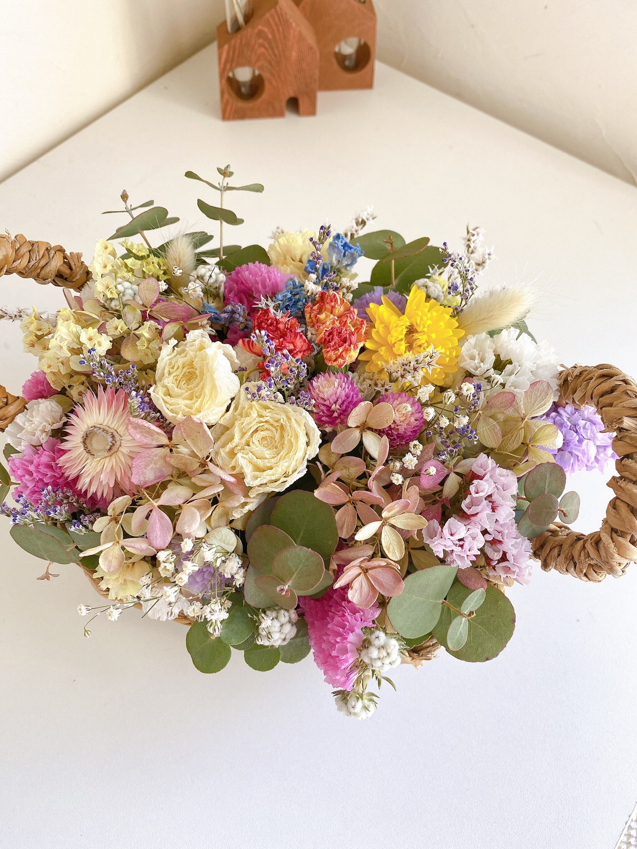 ドライフラワー フラワーバスケット 春色花籠 母の日