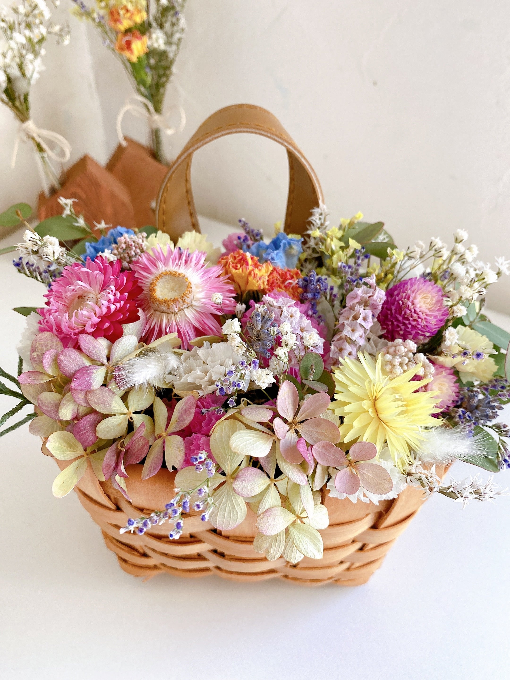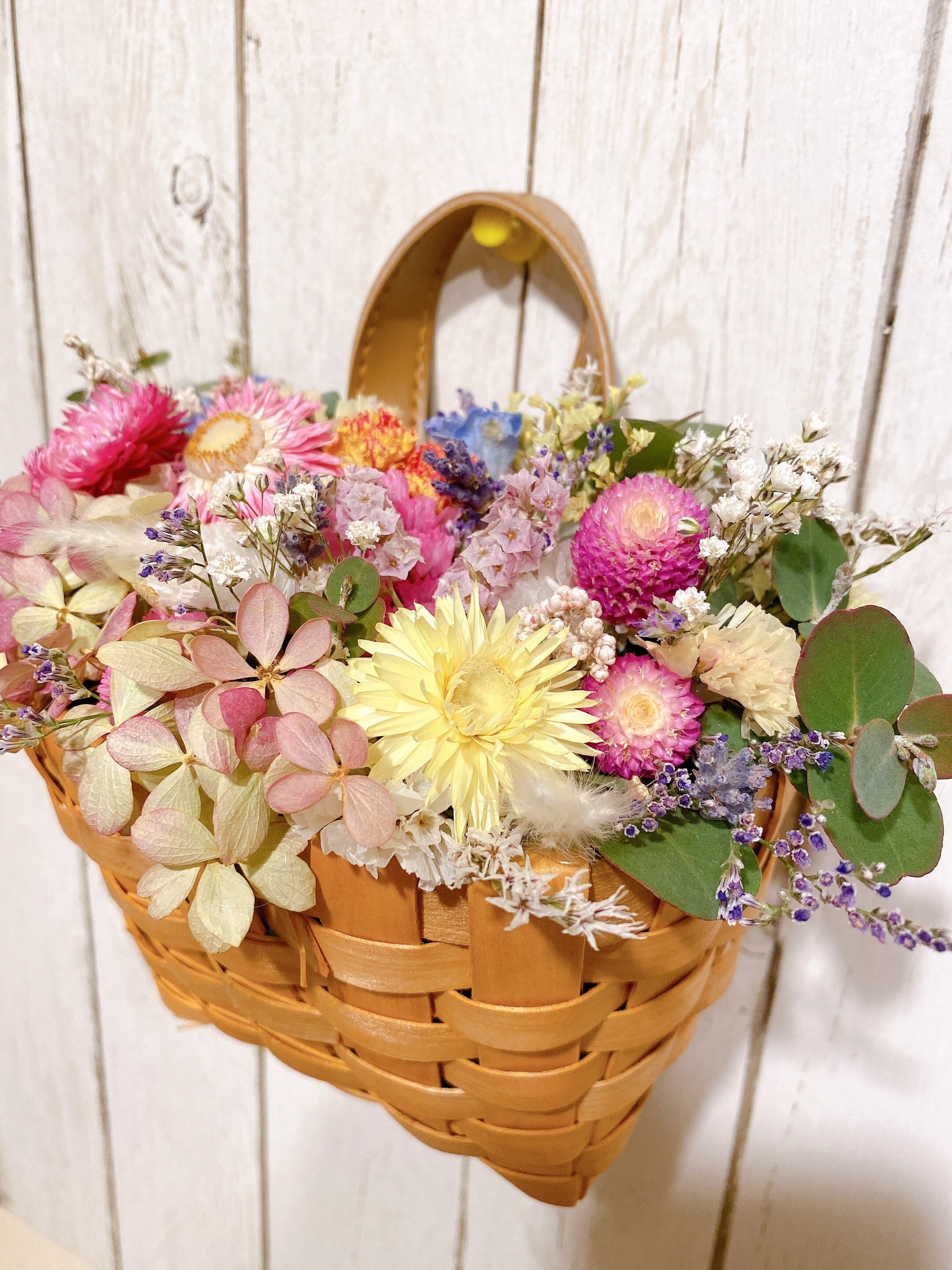 ドライフラワー フラワーバスケット 春色花籠 壁掛け用 母の日