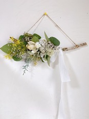 白樺 の枝にスワッグをあしらった横長スワッグです。