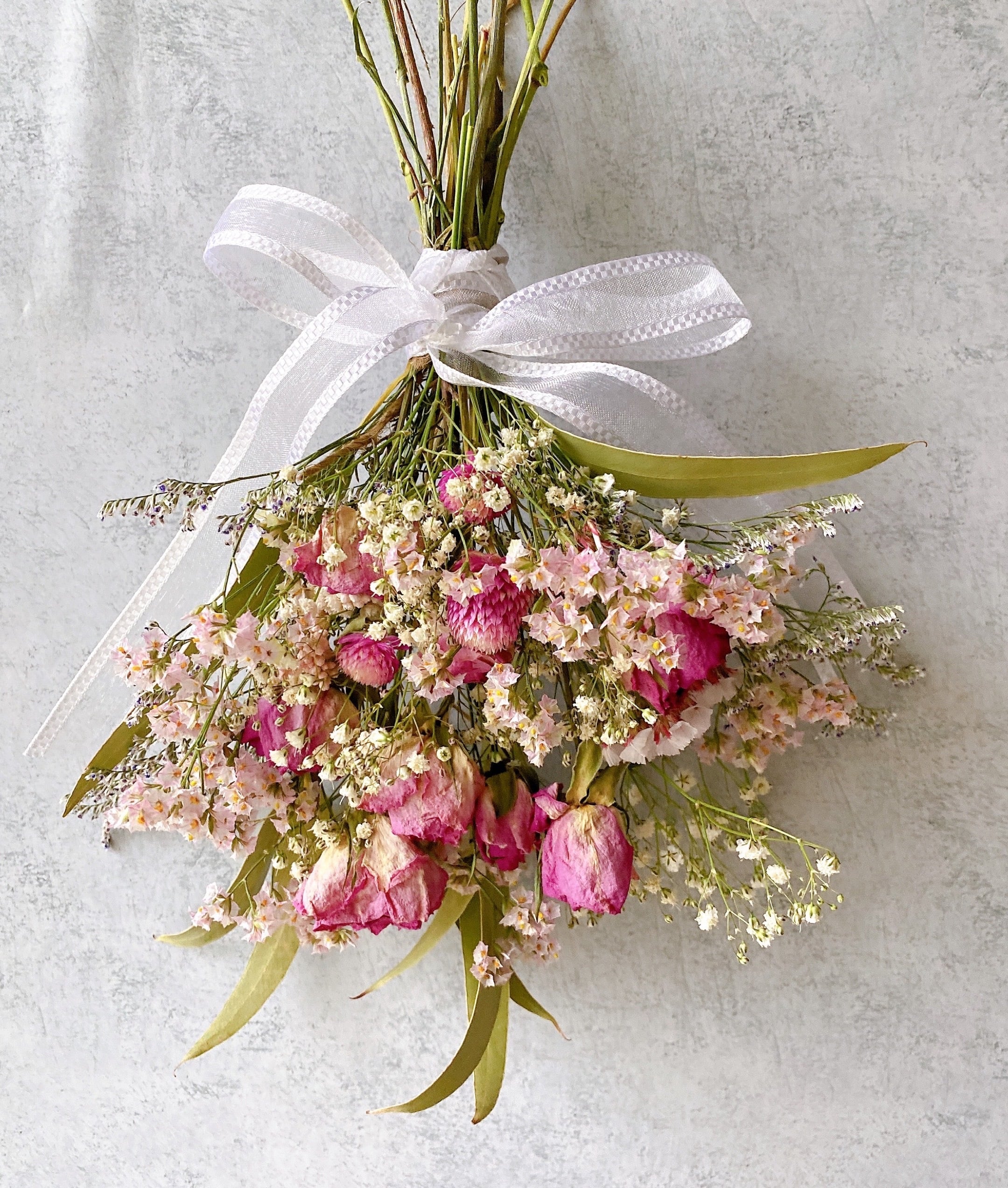 ドライフラワー 薔薇とかすみ草 Simple スワッグ ブーケ