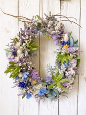 ドライフラワー 初夏のハーブが香る ドロップ型蒼色リース