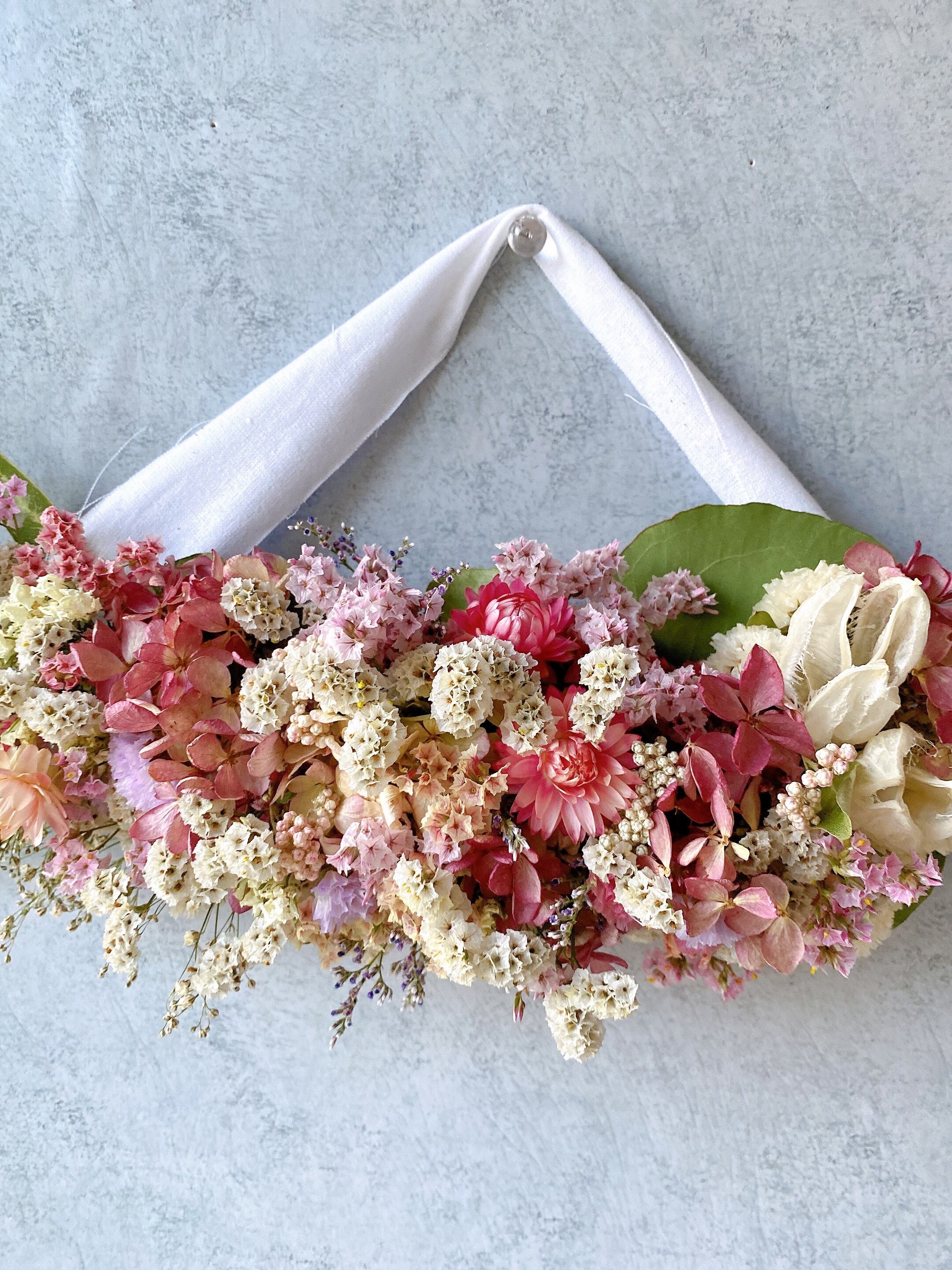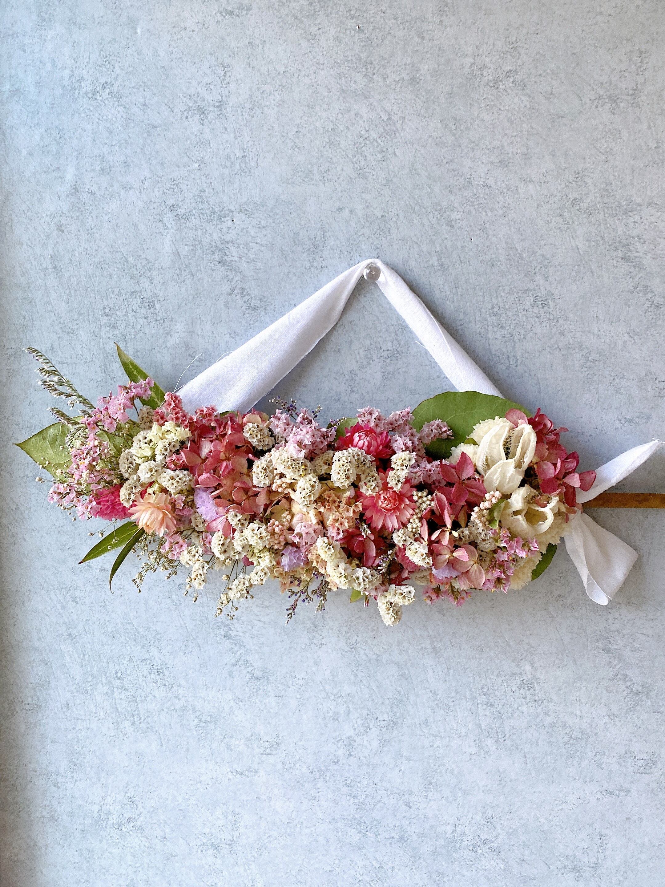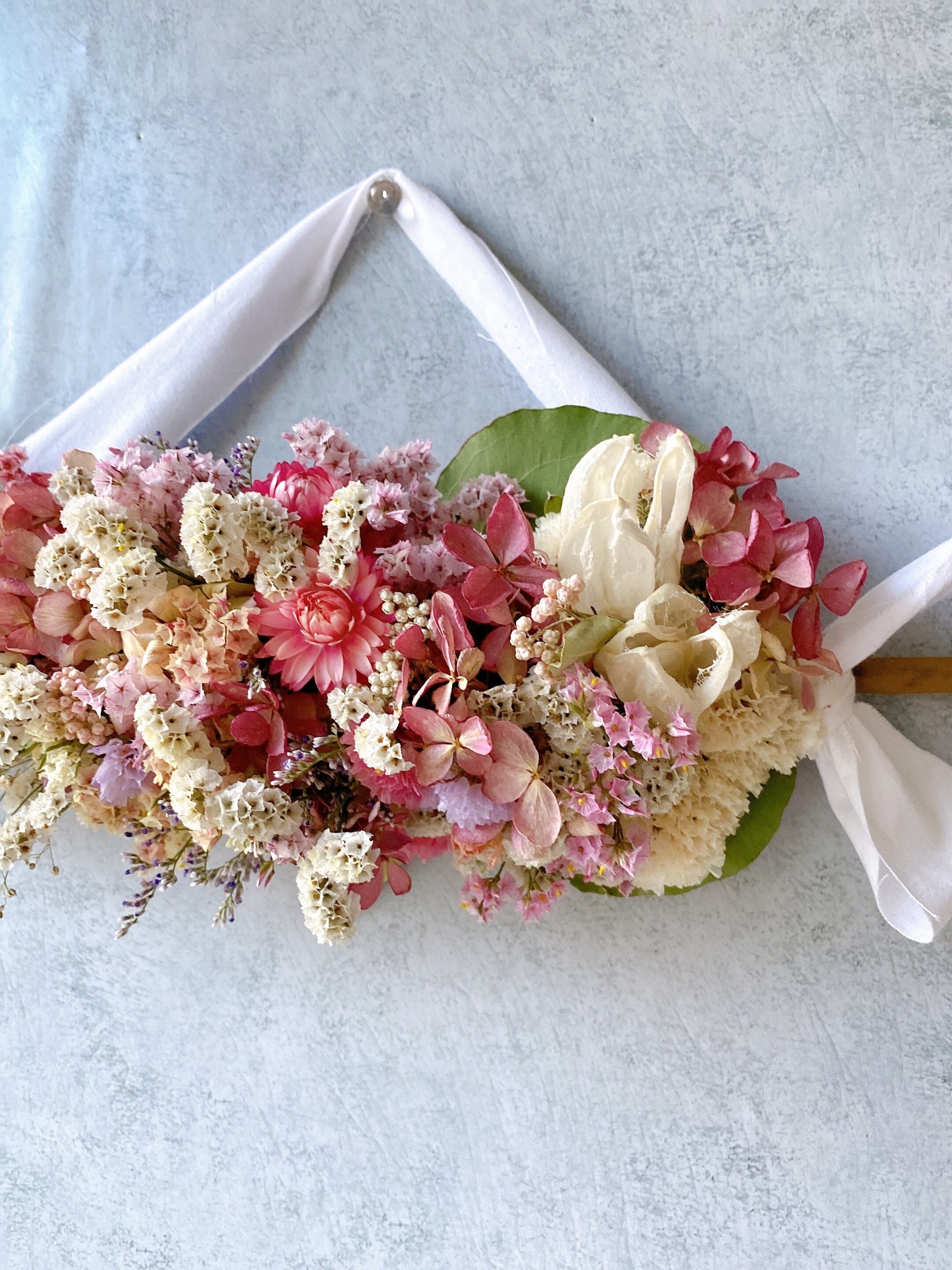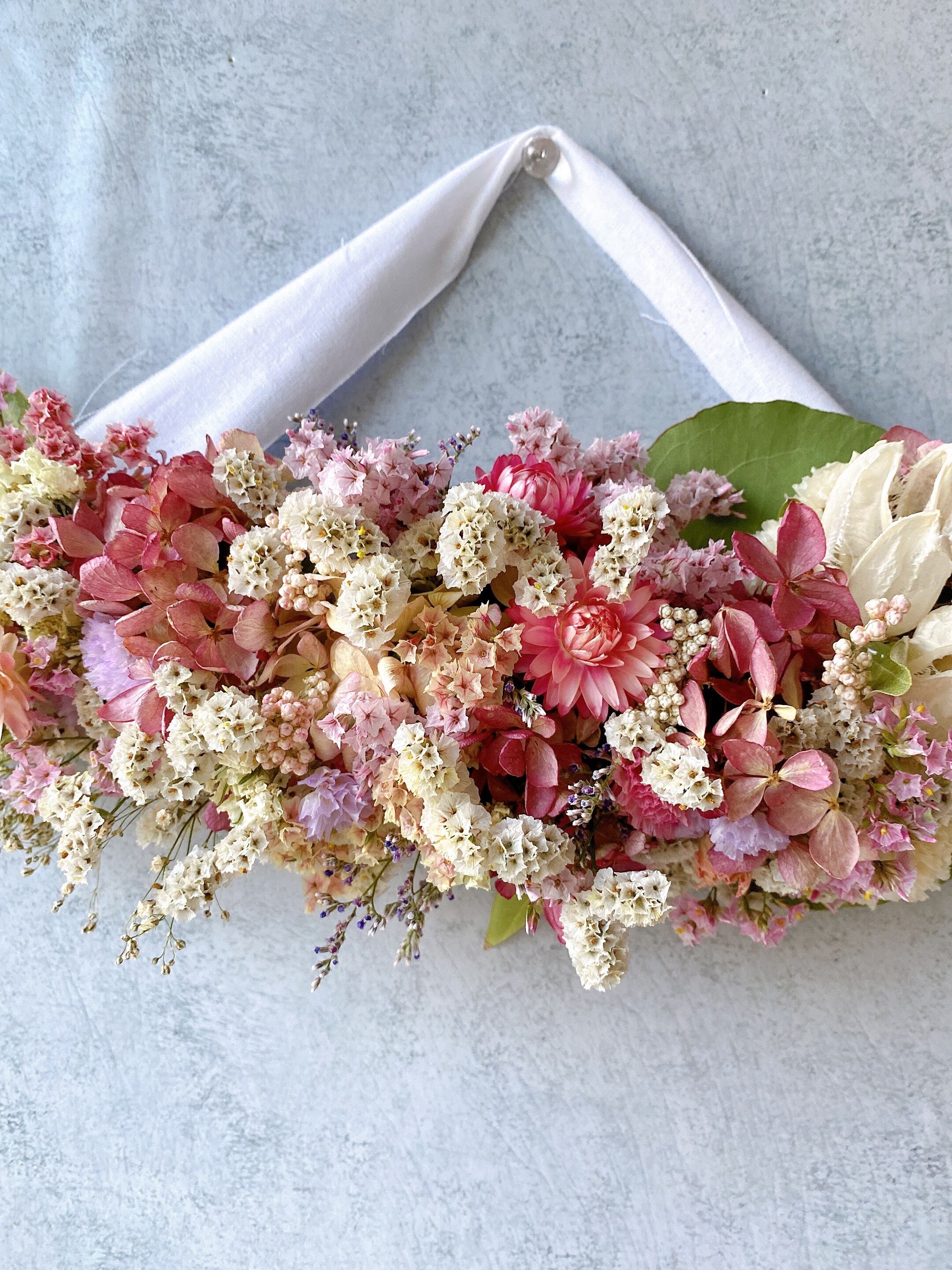 ドライフラワー 横長スワッグ 横型 スワッグ pink &White