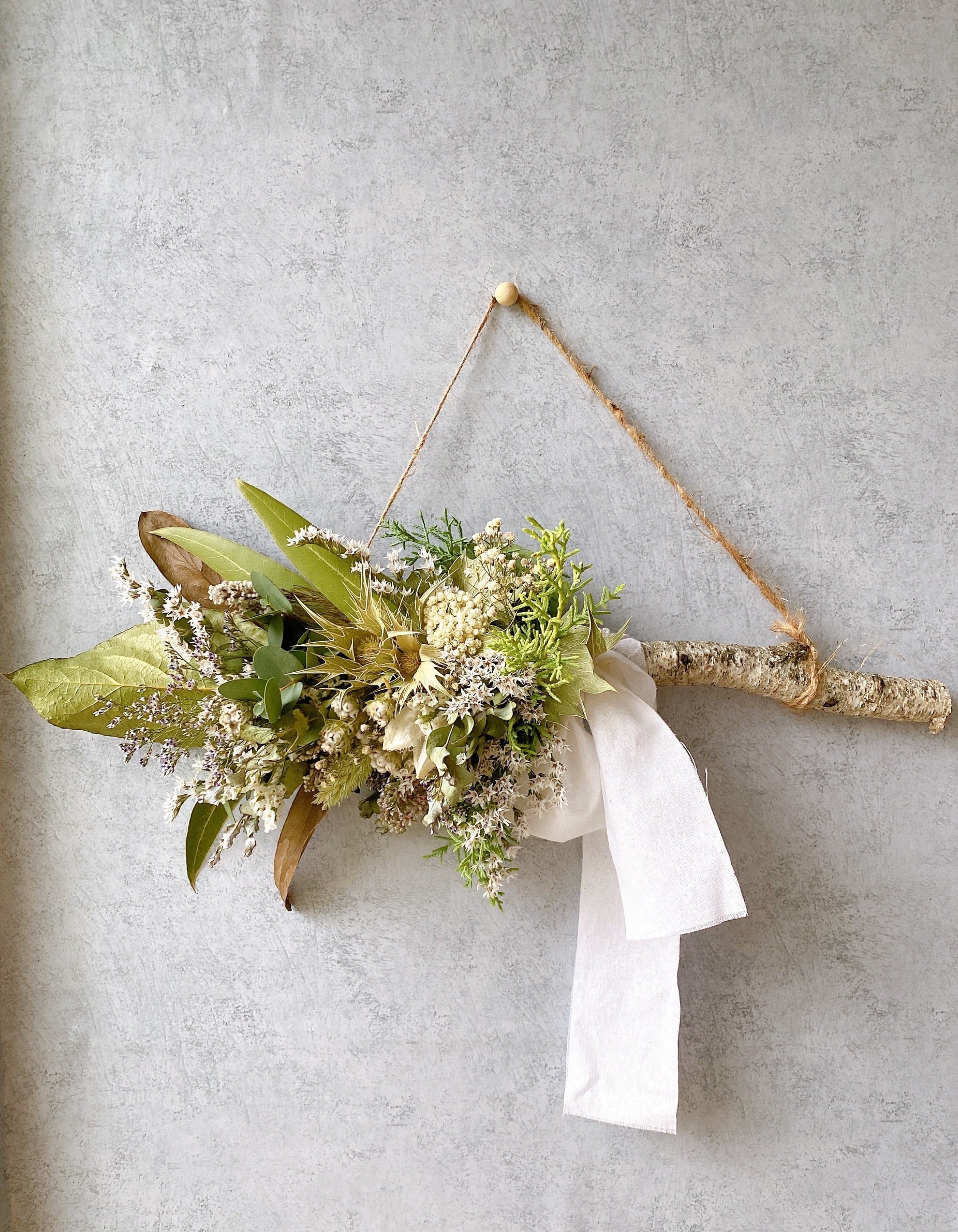 ドライフラワー 白樺スワッグ White&green 横長スワッグ