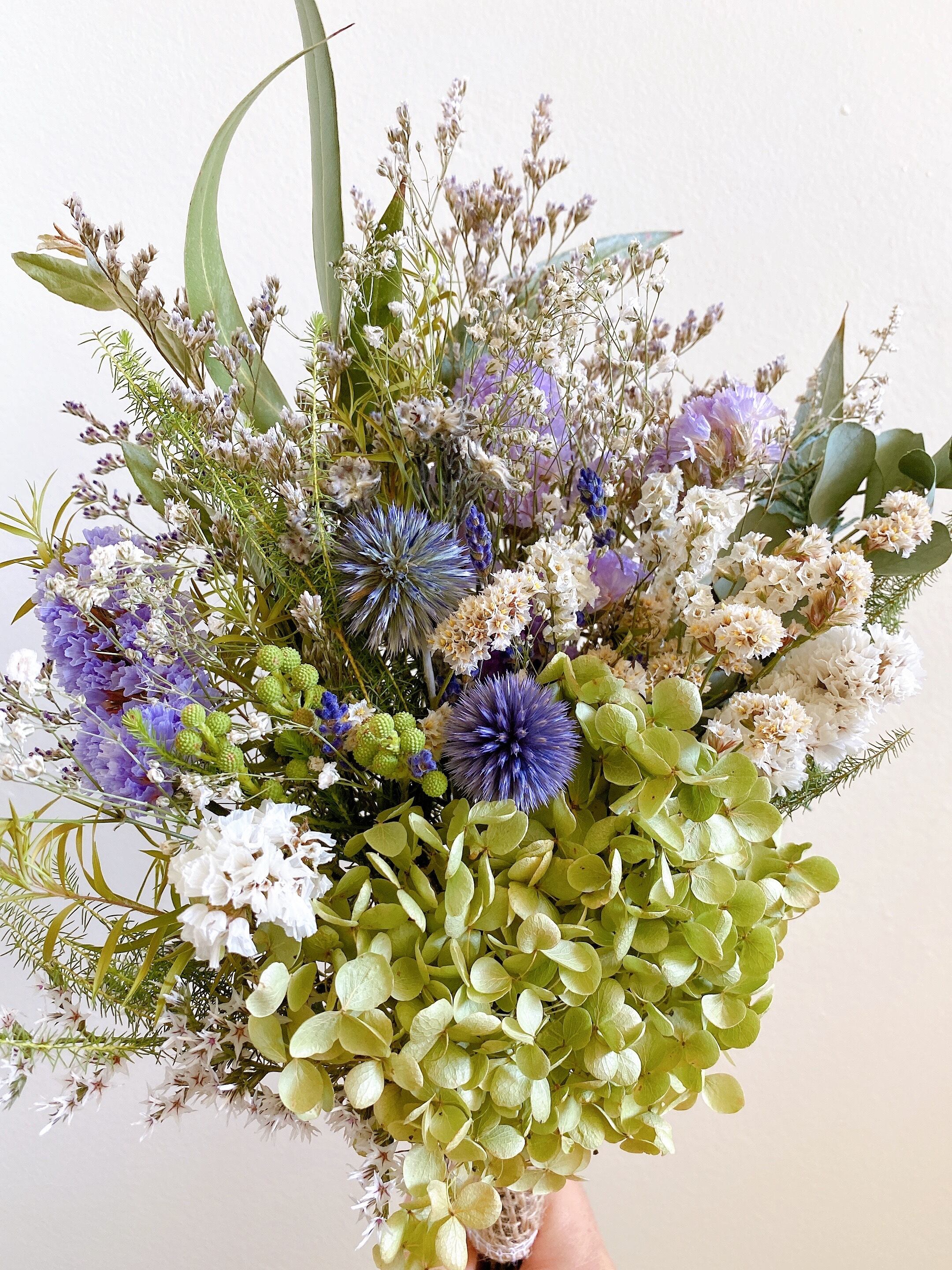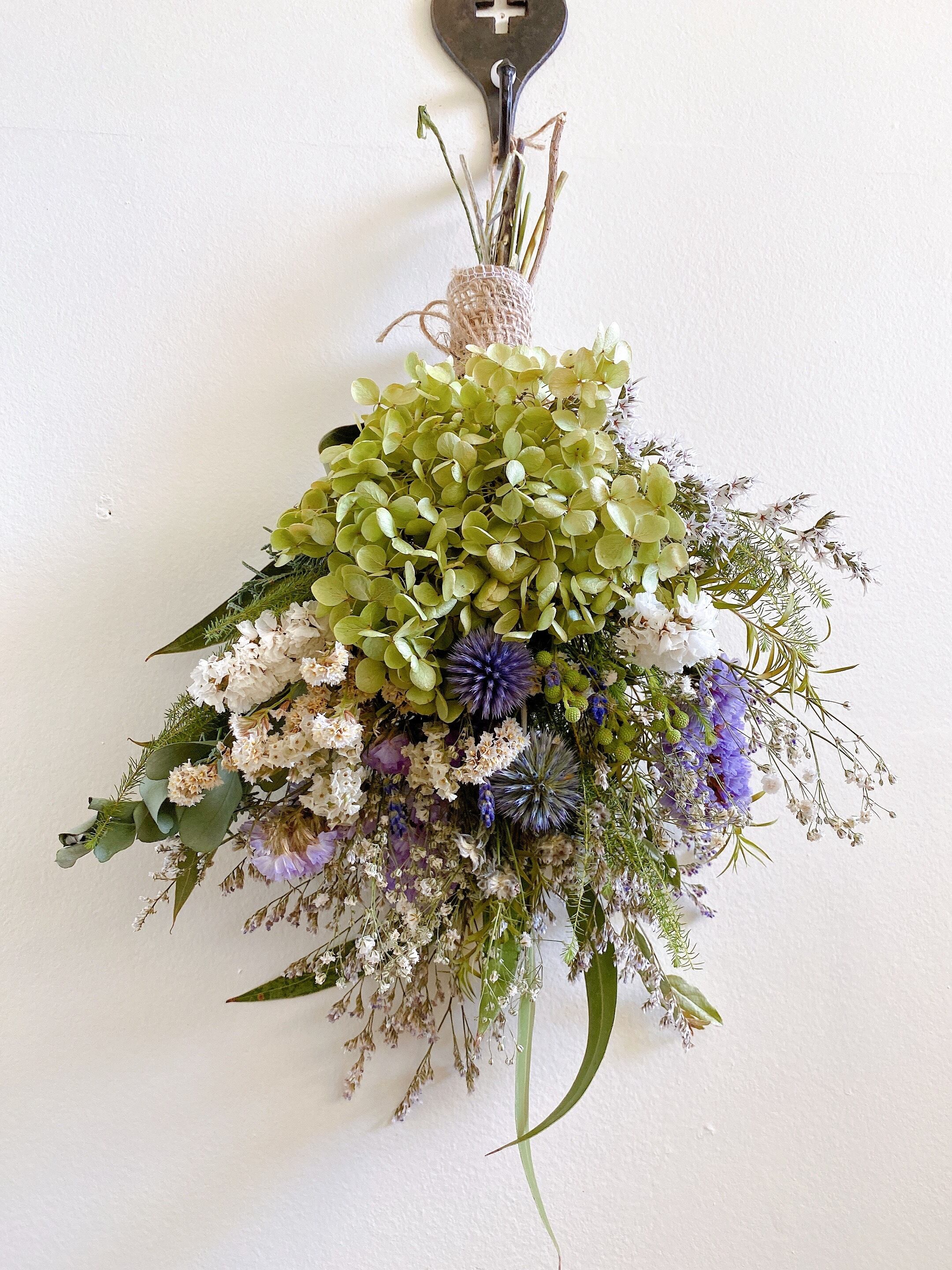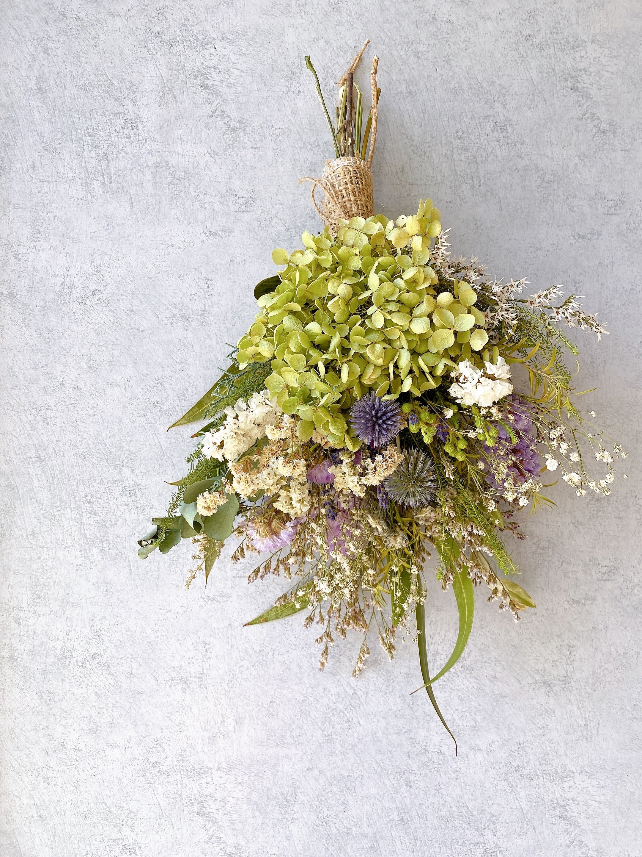 ドライフラワー 夏の爽やか スワッグ ブーケライムグリーン アナベル ルリタマアザミ